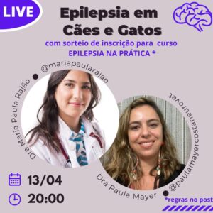 Hoje, 13/04/2022 às 20:00 hrs, minha colega e amiga @paulamayercostaneurovet e eu (@epilepsiapet) faremos uma live para discutir os principais erros a serem evitados no manejo das epilepsias em pequenos animais. Sabemos que as epilepsias têm alta incidência nos consultórios veterinários, e que há uma porcentagem de animais que podem ser considerados farmacorresistentes. Porém existe ainda a pseudofarmacorresistência, em que o animal não tem seus episódios controlados devido a falhas na conduta. O nosso bate-papo de hoje é voltado para você, médico veterinário, que recebe esses pacientes em seu consultório. Sortearemos, ainda, uma inscrição para a modalidade teórica do nosso curso “Epilepsia na prática”, que será ofertado de maneira híbrido em agosto. Esperamos poder levar informações que possam contribuir para a melhora na qualidade de vida desses animais.